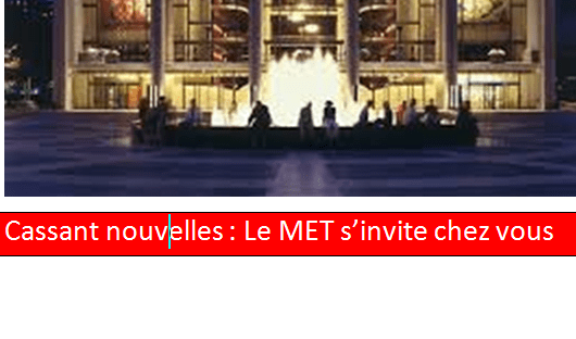 Vous avez (toujours) rêvé d’assister à un opéra au MET, le Metropolitan Opéra de New-York, sans avoir pu réaliser ce rêve, pour des raisons de budget ou d’organisation. Suivant le site du MET, une série de représentations, originellement transmises dans les salles de cinéma, sera mise à disposition à partir de ce soir, et commencera avec Carmen.