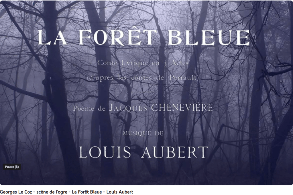 Le Petit Poucet. En 1904, Louis Aubert écrit son premier opéra, la Forêt bleue, où il fait se côtoyer le Petit Poucet, la Belle au bois dormant et le petit Chaperon rouge. Cet opéra sera créé en 1911 à Boston.