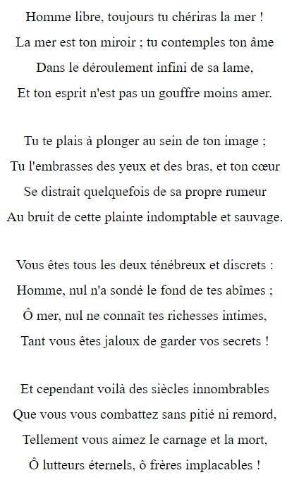 Année BAUDELAIRE oblige, je continue mes poèmes mis en musique façon OuLiPo, après La musique de Charles BAUDELAIRE, par un classique de cet écrivain : L’Homme et la Mer.