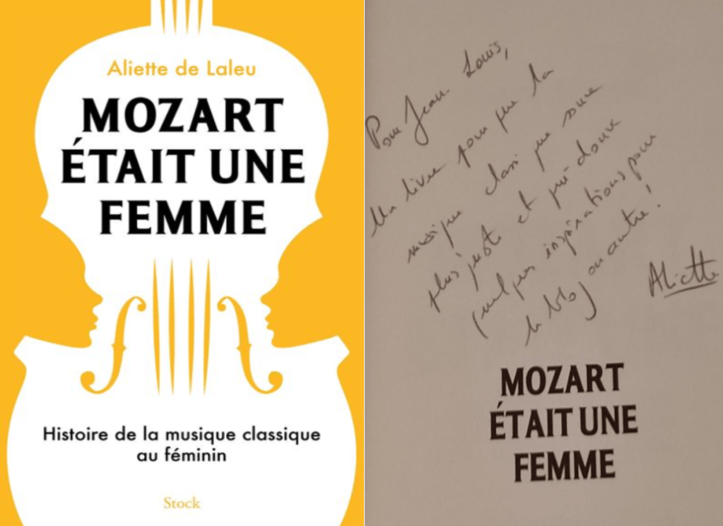 Je m’étais arrêté dans ma lecture en musique de Mozart était une femme, le brillant essai de la sémillante Aliette de LALEU sur la présence des femmes dans la musique classique au milieu du chat pitre 4. Je vous propose donc de poursuivre cette lecture.