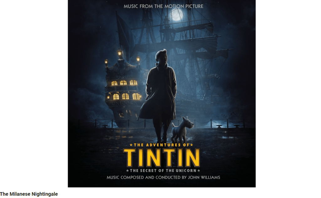 Les licornes : Dans l’adaptation assez libre des aventures de Tintin par Spielberg, le Secret de la licorne, on retrouve Bianca Castafiore, le Rossignol milanais, pour qui le compositeur John Williams a écrit une partition.