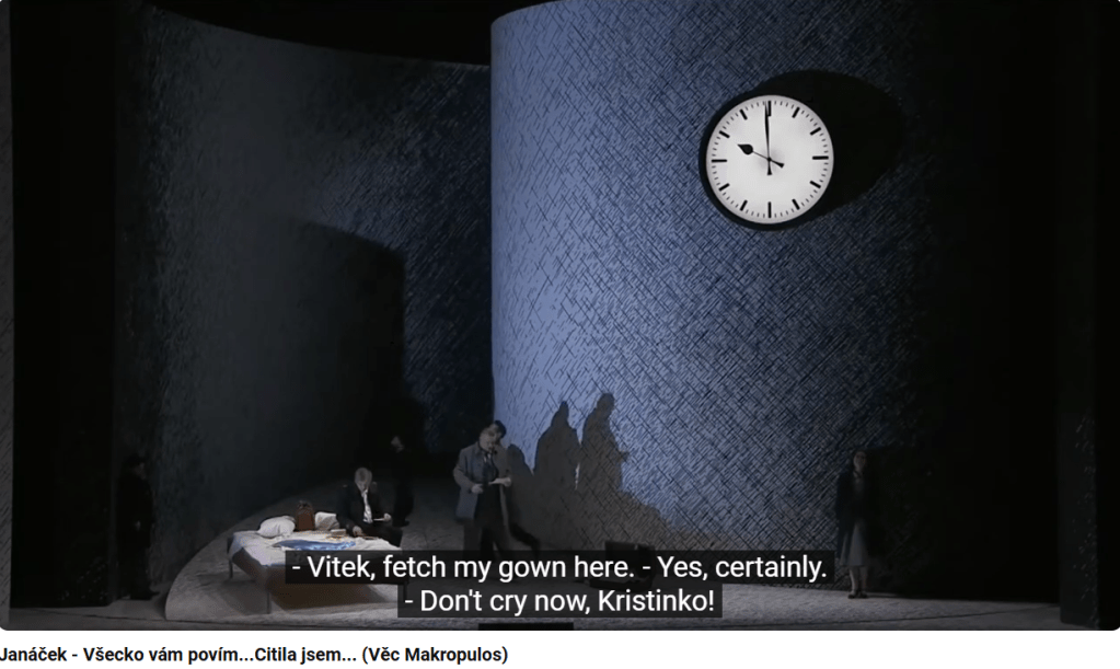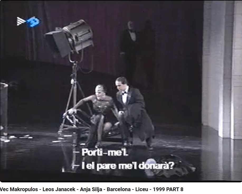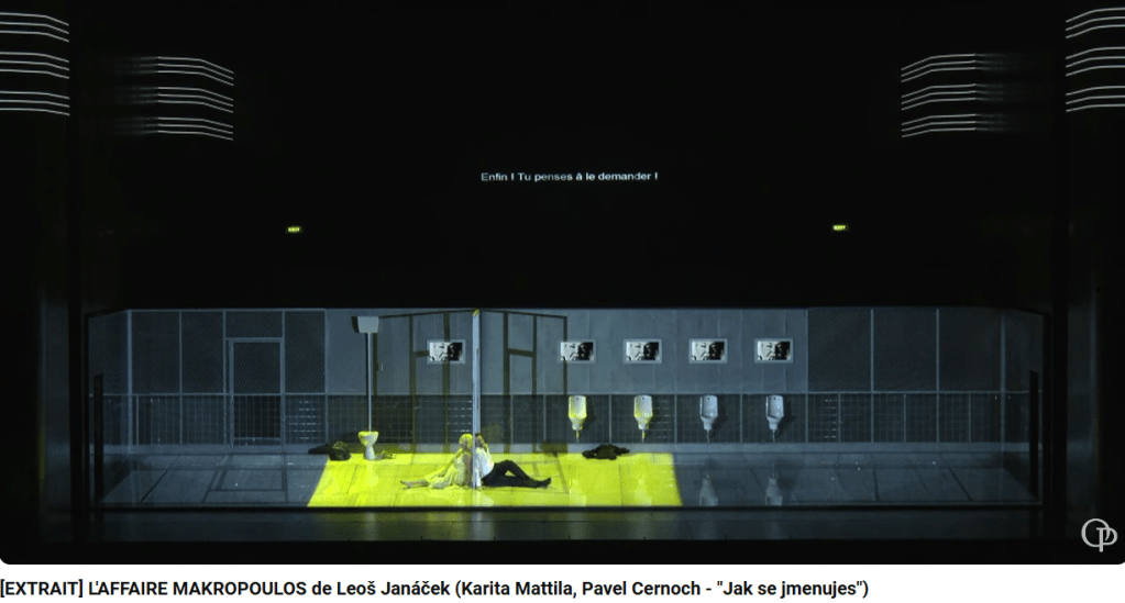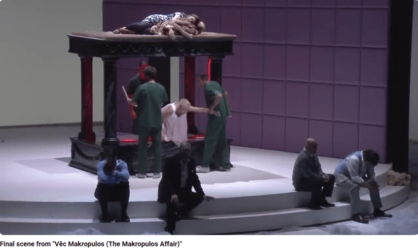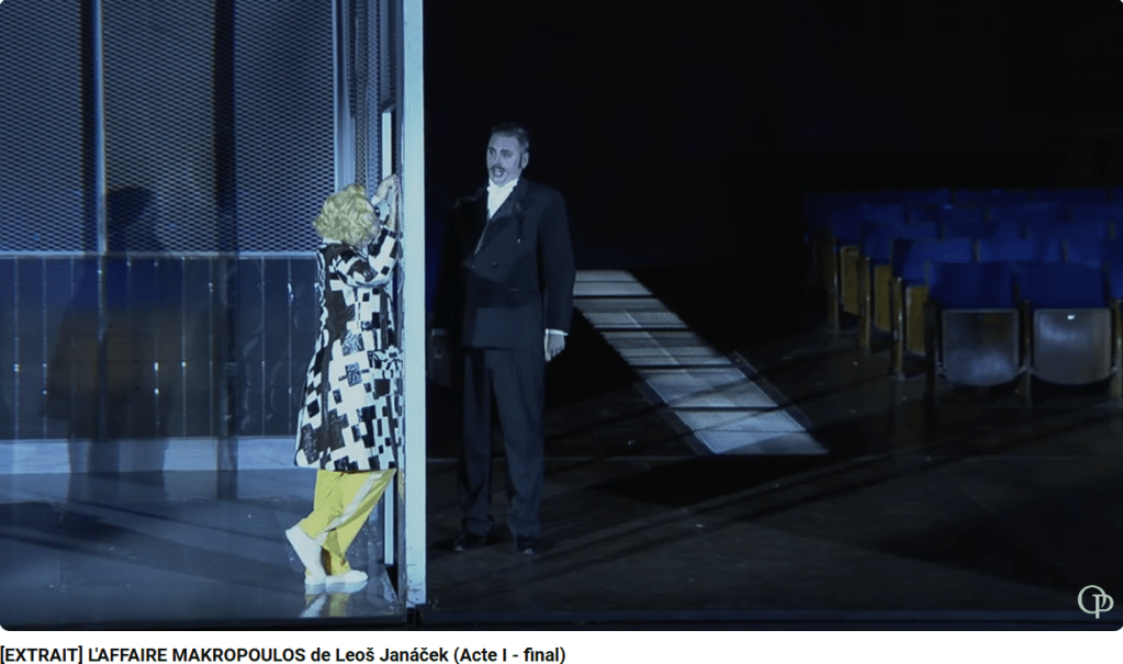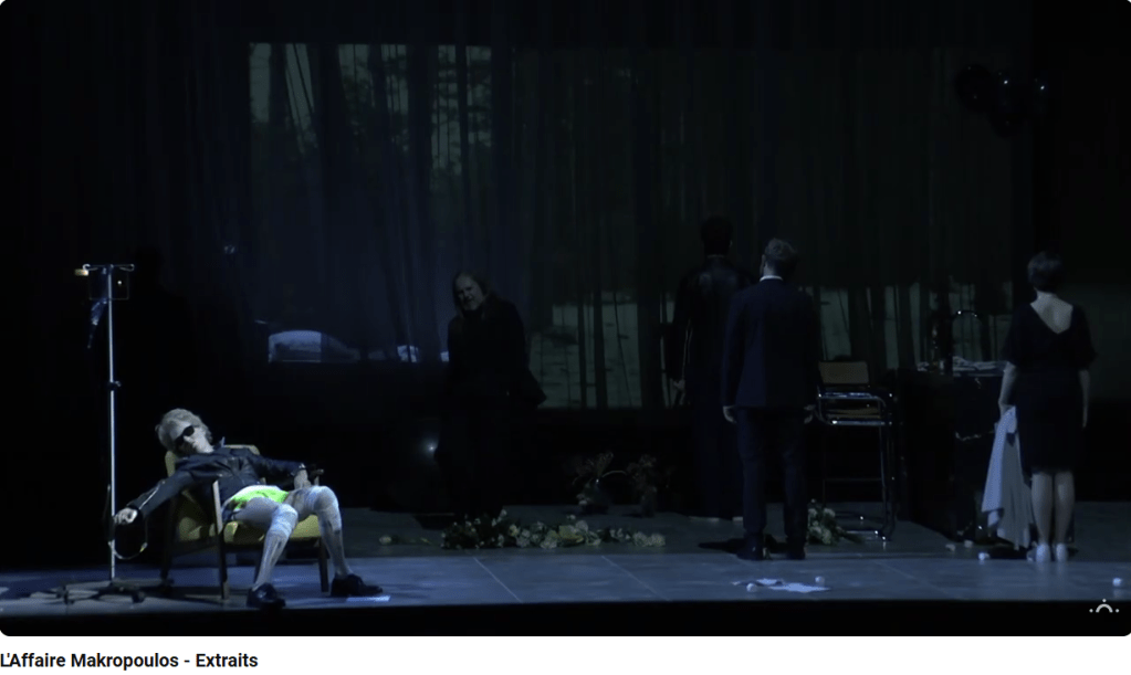 Le pitch : L’énigmatique chanteuse Emilia Marty semble connaître l’origine d’un procès opposant deux familles, les Prus et les Gregor, depuis près d’un siècle. Albert Gregor tombe sous son charme, et Emilia lui demande des documents laissés par son grand-père. À l’issue d’un concert, Emilia critique les chanteuses de son époque quand Hauk, un vieux comte, lui dit qu’elle lui rappelle Eugenia Montez, une chanteuse de sa jeunesse. Le descendant de Prus comprend que sous les noms d’Emilia Marty, Eugenia Montez ou Ellian Mac Gregor se cache une seule et même personne, Elina Makropoulos, qui a bu un élixir de longue vie il y a plus de trois siècles.