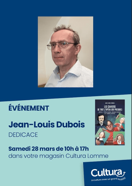 Je serai en dédicace au magasin Cultura de Lomme le 28 mars à 10 heures, et, à cette occasion, proposerai une animation en musique pour présenter ce livre.