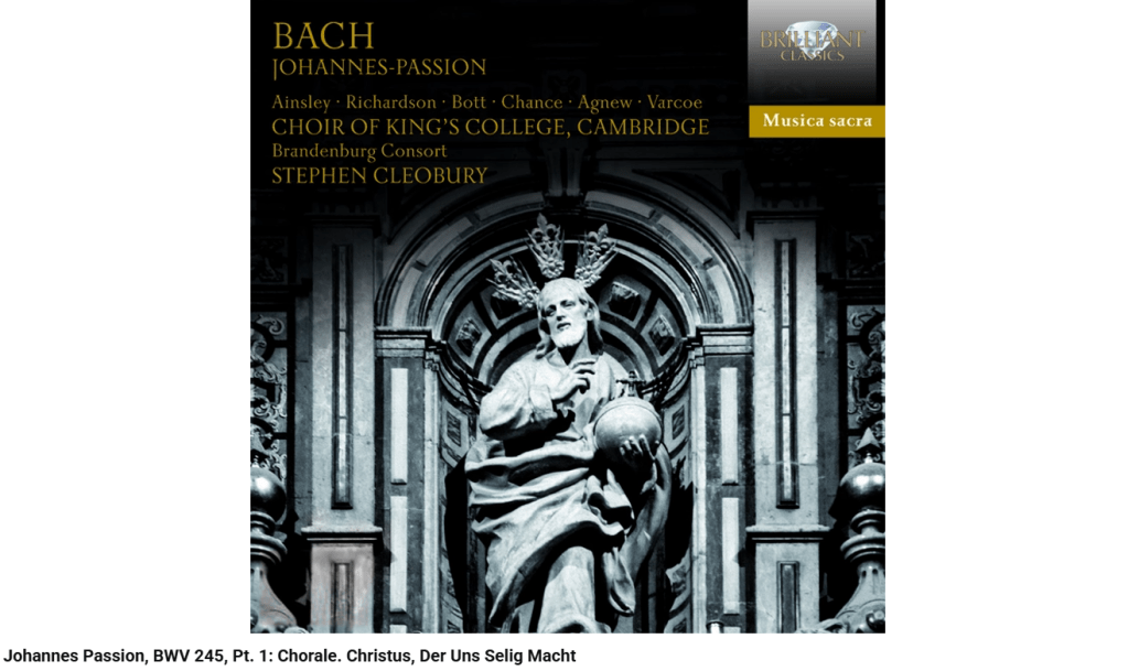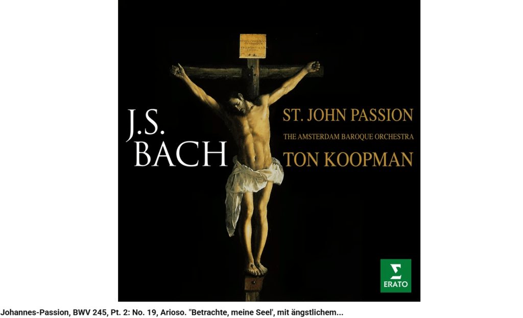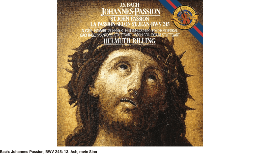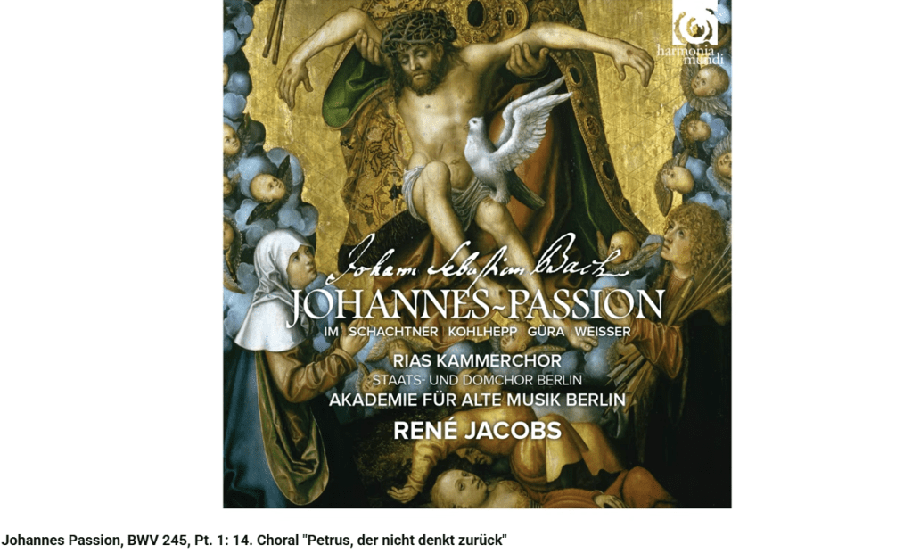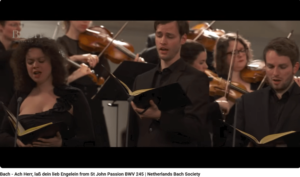 La Passion selon Saint-Jean se termine par ce choral : « Ach Herr, dein lieb engelein » (Ah, Seigneur, laisse ton ange emporter mon âme »).