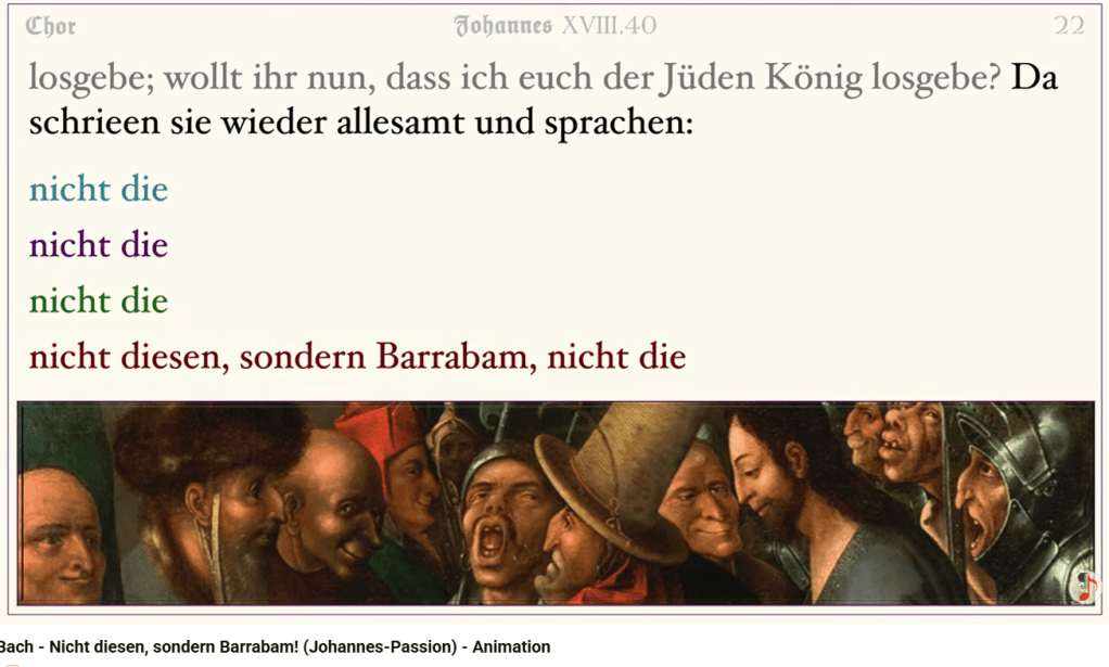 Le texte mis en musique par Bach est celui de l’Évangile selon Saint-Jean.