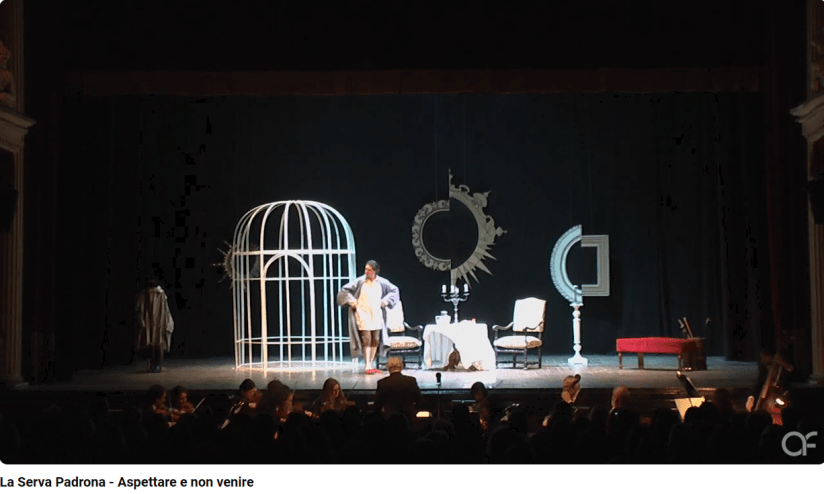Au début de la Servante maîtresse, de Pergolèse, le vieux Roberto est en colère contre sa servante qui est en retard pour lui porter sa tasse de chocolat matutinale.
