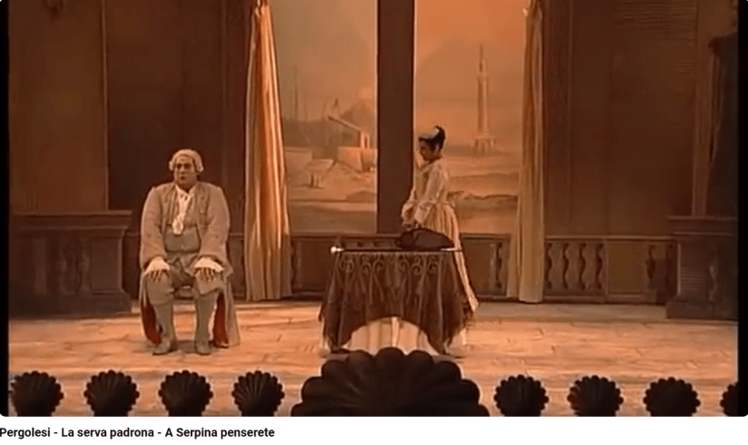 La Servante maîtresse (la Serva padrona) est un intermezzo de Pergolèse datant de 1733. Un intermezzo, ou intermède, est une petite pièce qui était jouée à Naples pendant l’entracte d’un opéra sérieux (opera seria). C’est la reprise à Paris en 1752 qui a déclenché la querelle des Bouffons.
