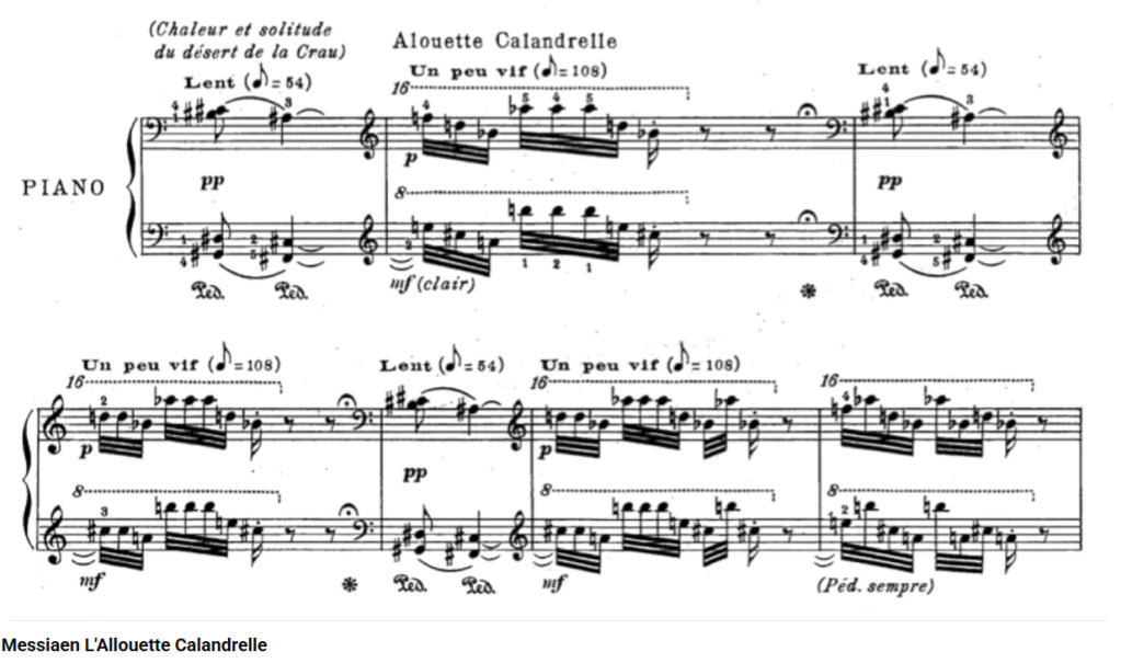 Un exemple d’amphimacre se trouve chez Messiaen, avec l’Allouette calandrelle.