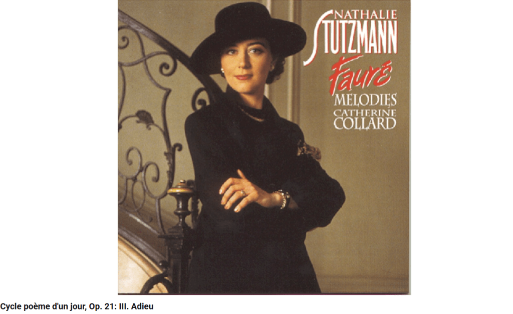 Page 326 : On comprend maintenant pourquoi l’Adieu est depuis toujours un thème élégiaque et lyrique (cf. entre autres Liszt, Mélodies n° 42 Ich scheide, n° 44 Lebewohl, Bizet, Adieux de la princesse arabe (V. Hugo), Tchaïkovski, Adieu, op. 60 (Nekrassov), Rakhmaninov, les deux Adieux op. 26 (Koltzov), V. Chebaline, Une note triste, op. 40 (A. Kovalenkov), Gustav Mahler, Das Lied von der Erde, VI (Der Abschied), Gabriel Fauré,Adieu (Poème d’un jour, op. 21), etc.