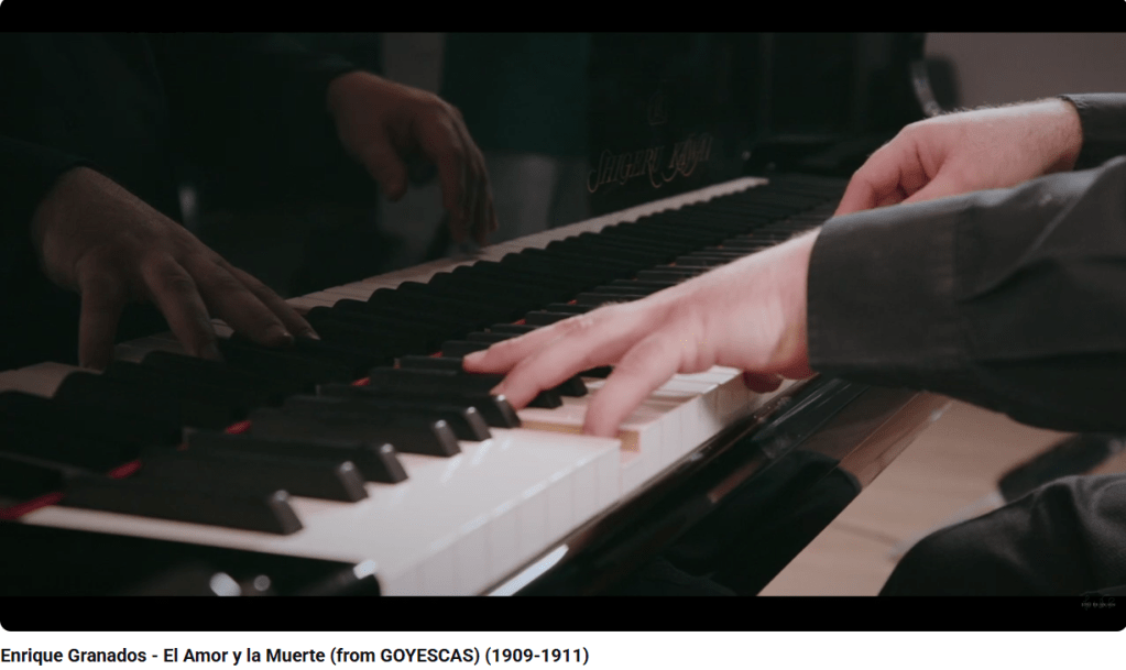 Page 434 : À la fin de l’admirable suite des Goyescas (Goyescas, 2e partie de « Los Majos Enamorados » : V, El Amor y la Muerte) que Goya inspira à Granados, la Ballade de l’Amour et de la Mort se termine par la mort du « Majo » ; et tout s’achève sur la Sérénade du Spectre, qui disparaît en pinçant les cordes de sa guitare.